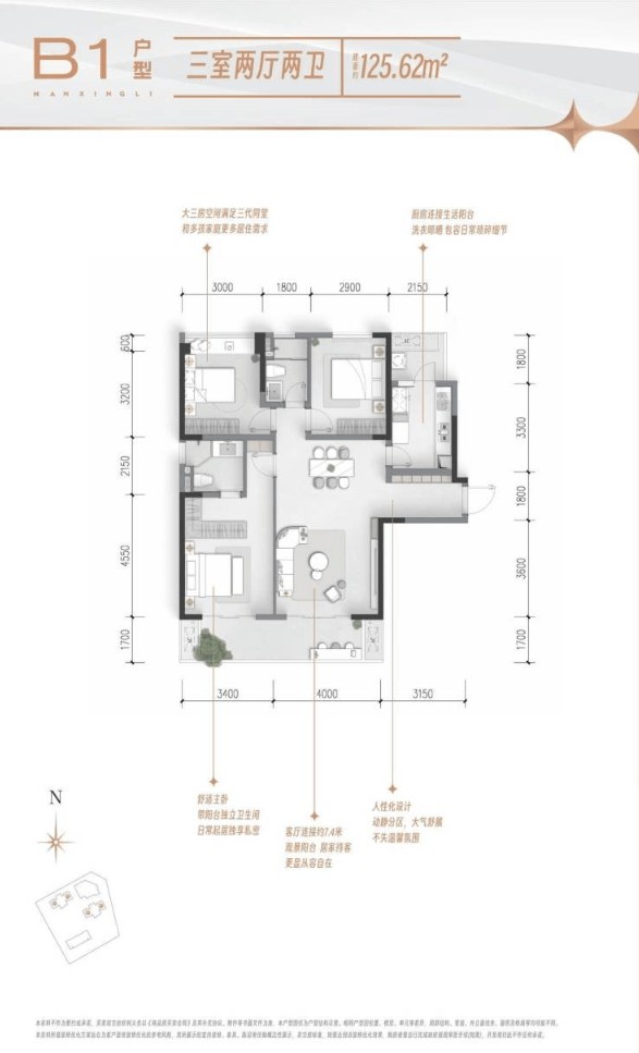04 主力户型解析 纯粹118-125㎡精装三居,以全屋智能与科学功能布局,满足单孩、二孩及多代家庭的品质改善需求