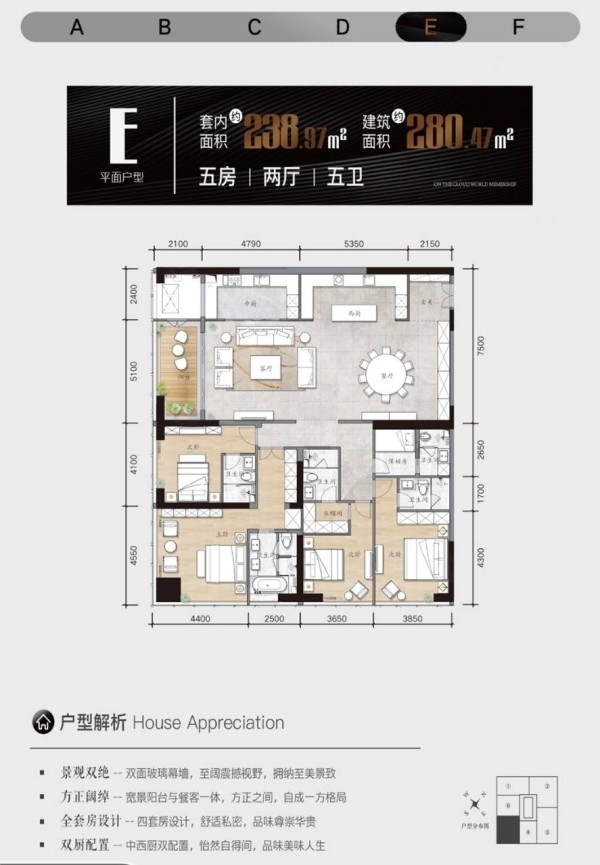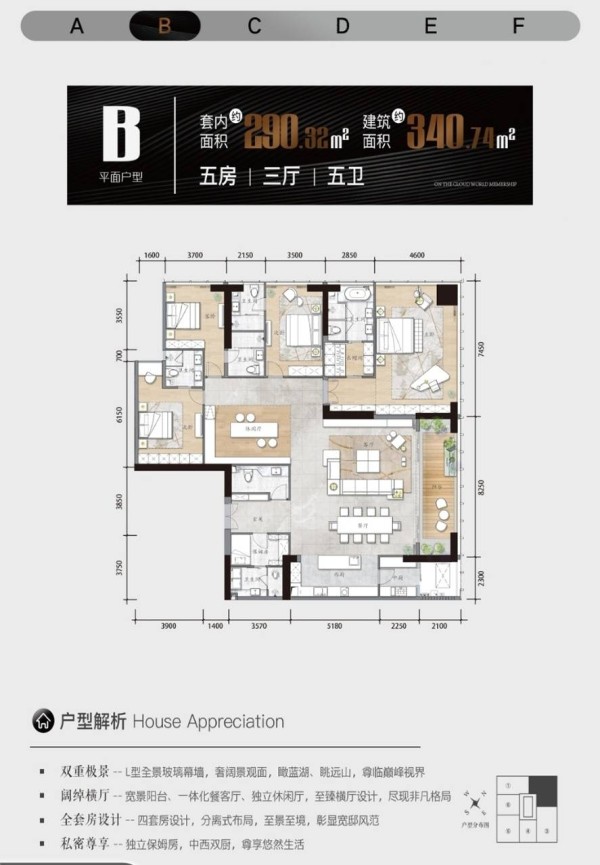 3⃣️全玻璃幕墙的设计全玻璃幕墙设计,270°超凡极目视界,突破传统大平层限制,约8.2米奢阔横厅,超100m极景厅堂,彰显云端宽境人生
