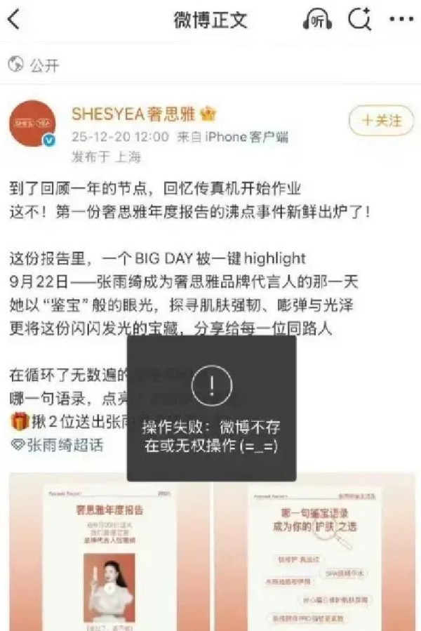 刚刷到一条让人停住手的消息有不少护肤、美妆品牌的页面上,跟张雨绮有关的代言内容突然不见了,点进去不是“操作失败”,就是直接提示“无权查看”。这波变化的背景,跟她近期被人实名指控代孕、插足婚姻、甚至用律师施压家属等事有关。消息发出来后,网上一下子炸了,但她本人到现在还没正面说过什么。