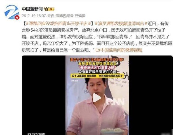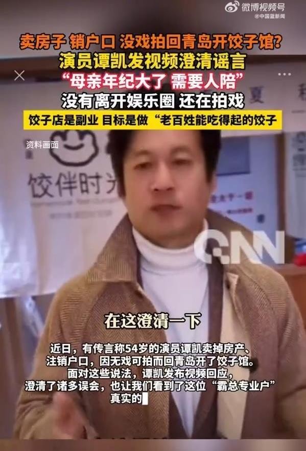 那天下午,谭凯自己录了个视频,语气很平静,一条条说明情况:房子没卖,户口还在北京,搬到青岛是陪母亲一起住,因为她年纪大了身体不太好,至于饺子馆的事,其实没开店,就是试着做了几回,图个开心,他说他不是混不下去,是想多花时间陪陪母亲。
