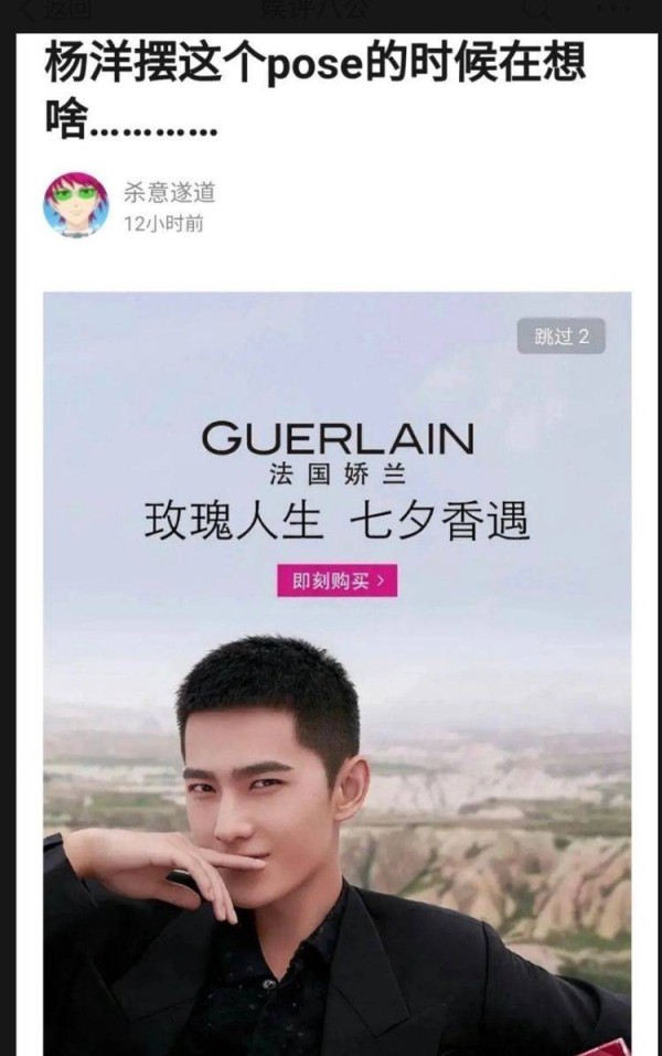 最早杨洋以极佳的气质和极佳的人设赢得了众多网友的喜爱,在此之后出演的几部电视剧作品也都极佳,与其人设相得益彰,在此之后他也以常驻Mc的身份参加了《花儿与少年》这一档综艺节目的录制,在这一档节目中我们也看到了杨洋极佳的人设,很多网友对这位男明星非常期待,而这两年杨洋在娱乐圈里的名气似乎已经远不如以前了。除前一段时间与成龙合作拍摄的影片外,并没有什么新作面世,许多网友都表示,杨洋到底是怎么回事?而且杨洋还经常在自己的社交网站上晒自己的健身照,但很多网友对他想要立下这样一个人设并不特别喜欢。