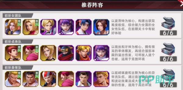 英雄体系按职能划分为四大职业:攻击型、防御型、突袭型与辅助型,各司其职,协同作战。攻击型英雄主打范围伤害与持续压制,如草薙京凭借全体燃烧伤害实现多段减员;夏洛特则依靠高频连招快速压低敌方血量。防御型英雄承担承伤与保护职能,玛丽可通过伤害分摊机制有效保障队友生存。突袭型英雄专注爆发收割,八神庵具备单体秒杀能力,特瑞则在残局阶段展现极强终结效率。辅助型英雄提供增益、减益或战术支援,是整支队伍运转流畅性的关键支点。