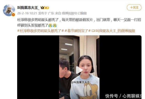 近日,网友们在1月26日爆料,杜淳在一次直播中不经意间说出了一句直白的大实话,差点让娱乐圈的男明星们的秘密曝光。他当着妻子的面爆料,称很多男明星都秃了,每天戴的都是假发片,外出时必不可少,甚至开玩笑地说,如果碰到同行,万一头发一碰掉下来,可能就原形毕露。这番话像是一记闷雷,瞬间揭开了屏幕前那些浓密发量的虚幻面纱。