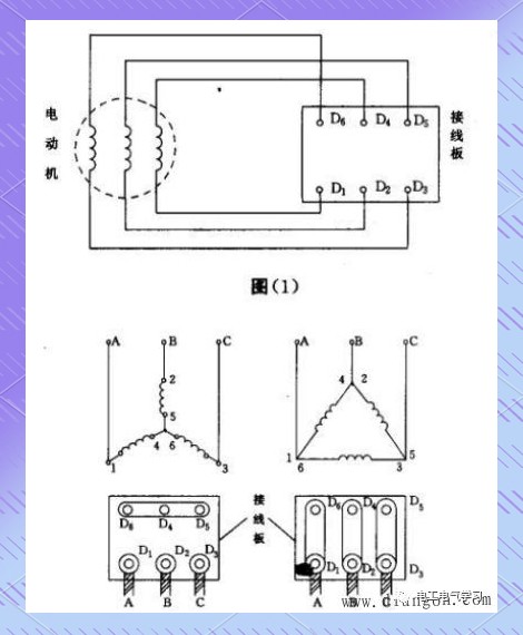 两种接法,与我们实际接入的操作并无直接关联,但理解其背后的原理和差异至关重要。在图2和图3中,可以看到D1、D2、D3分别接入A、B、C三相,这实际上反映了电动机接线盒内部的差异。通常,这三个接线片不会随意更改,但了解它们的不同接法对电动机性能的影响至关重要。