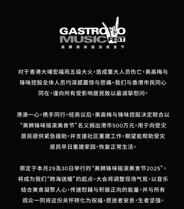 我后来查了一下,原来这次捐款不是临时起意。 美高梅早在11月28日就在官方微博上发了公告,说要把这个美食节作为“跨海送暖”的起点。 他们特意调整了现场的气氛,想把音乐和美食变成一种温暖的力量。