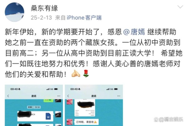 2026年2月19日(大年初三),内娱再现正能量名场面!演员唐嫣在新春佳节之际,再次为西藏高海拔牧区的藏族女大学生汇出资助款项,这一暖心举动被偶然曝光后,瞬间引爆全网,#唐嫣连续十年资助藏族女生求学# 话题火速登顶热搜,单日阅读量破12亿、讨论量飙升至530万+,成为马年春节后最具温度的热搜。据悉,此次汇款不仅是唐嫣马年的首个公益行动,更标志着她已连续十年,以低调务实的方式,默默支持藏族女孩从高中到大学的求学之路,没有高调宣传、没有流量炒作,甚至很少有人知晓这份跨越十年的坚守,这份温柔的善意,让无数网友倍感动容,纷纷留言“人美心善,这才是内娱该有的榜样”。