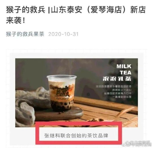 比如,和不少明星一样,他也在爆火后跨界进军餐饮行业,创立奶茶品牌“猴子的救兵”。但2021年9月13日有网友爆料称,自己加盟了张继科联合创立的奶茶品牌“猴子的救兵”,但该品牌存在虚假宣传、未进行特许经营备案等情况,使得自己损失了近5万元。更有加盟商表示,冲着张继科的名气,开了两家奶茶店,却迟迟等不到“猴子的救兵”公司承诺的加盟服务,还被拖欠货款,损失近百万元。天眼查信息显示,目前该公司并未查询到张继科持股的情况,据媒体公开报道,其股份由亲人代持。