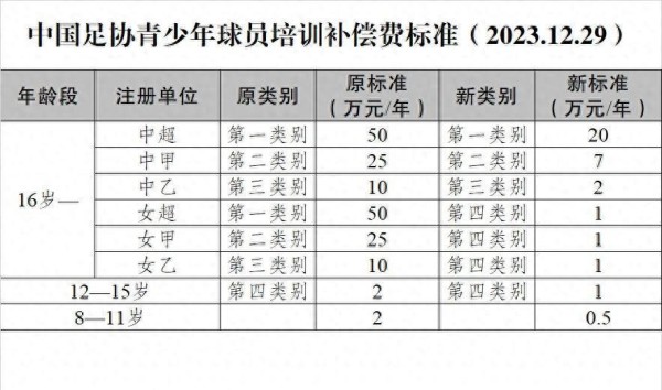 官方:足协大幅降低了青少年球员转会时的青训补偿计算标准