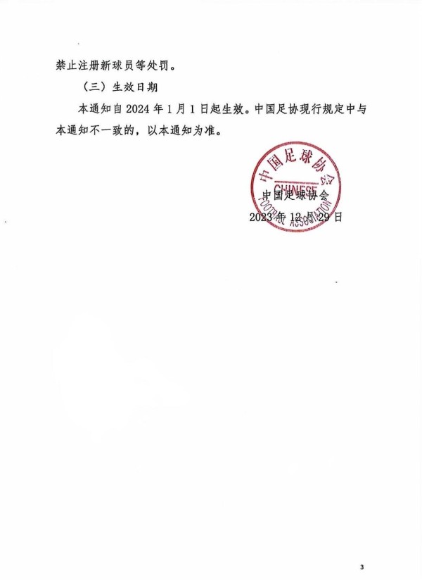 这一举措旨在提高补偿费支付的透明度和效率,保障青训培养单位的权益。另外,新政策还加大了对违规行为的惩处力度。职业俱乐部必须严格按照新政策要求支付培训补偿费用。中国足协将不定期进行抽查,并接受青训培养单位的举报。对于恶意逃避、拒绝支付培训补偿的俱乐部,中国足协将视情节严重程度给予相应的处罚,包括警告、通报批评、罚款以及禁止注册新球员等。这项新政策将于2024年1月1日起正式生效。这对中国足球的青训体系来说是一次积极的改革,它能够进一步促进足球青训的发展,为培养更多优秀的青年球员奠定坚实的基础。同时,也能够保护青少年球员的权益,确保他们能够获得合理的培训补偿。然而,随着这项新政策的实施,还需要关注一些可能的问题和挑战。首先,如何确保培训费的合理使用和管理,避免浪费和滥用,需要建立健全的监管机制。