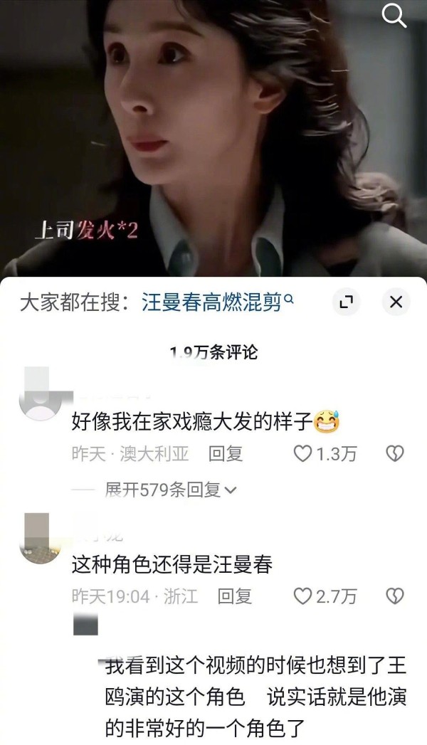 但抖友们的看法却完全不同。“她好像在努力告诉大家,看,我在演一个狠人”,“这个赛道,还得是王鸥的汪曼春,不经意流露出的狠劲才是最绝的”。