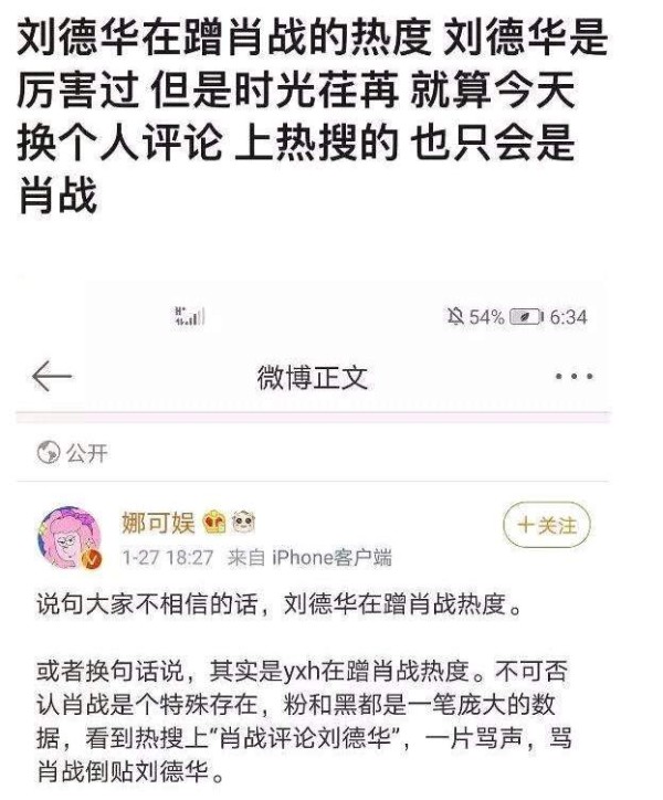 另外,还有肖战的粉丝称这次刘德华蹭了肖战的热度,一度引来了不少网友的骂声,该粉丝发帖称:“刘德华在蹭肖战的热度,刘德华是厉害过,但是时光荏苒,就算换个人评论,上热搜的也只会是肖战。”
