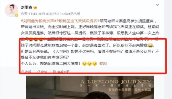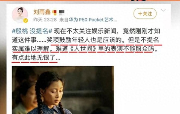 事件的起因是著名编剧刘雨鑫的一条微博,她对殷桃未能提名表示难以理解,甚至用“阴阳怪气”形容当前状况,怀疑奖项评选的公正性。此一言论如同一颗震撼弹,激起了网友间的热烈讨论,纷纷热议赵丽颖的获奖是否实属名副其实,也讨论殷桃的演技是否被低估,更对“飞天奖”的评选标准产生质疑。
