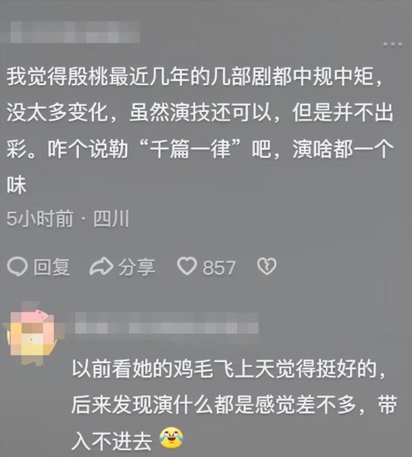 此外,殷桃即将播出的新剧《凡人歌》,虽然角色跨度较大,却没有满足观众的期待。许多人反馈她的演技显得“套路化”、“模式化”,台词方面的情感流露也有所欠缺。可见,对于演员而言,突破自我、不断探索演技的边界,已成为了他们保持魅力与创作活力的重要任务。