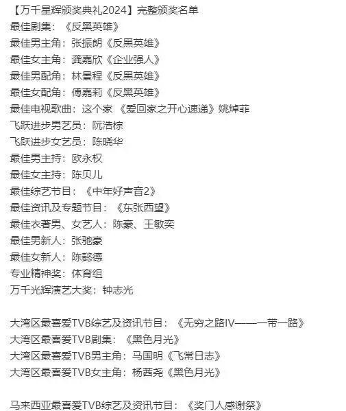 红毯依旧呈现出一种不变的朴实风格,而奖项的分配则如同在年会上随意分发的奖品,整个颁奖过程充满了荒诞与令人哭笑不得的情节,引发了网友们的广泛热议。 本次颁奖名单引发网友热议,奖项分配如同随机发放,部分结果让人啼笑皆非。人们纷纷调侃道,这简直是“大放异彩”,还有人戏言“TVB似乎已经自暴自弃了”。