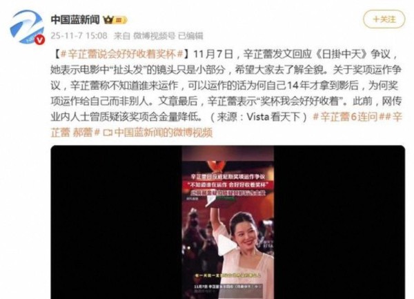 而辛芷蕾的回应,则更像是一种对“被认可”的强烈捍卫,她需要这个奖项来证明自己的商业价值和市场号召力。