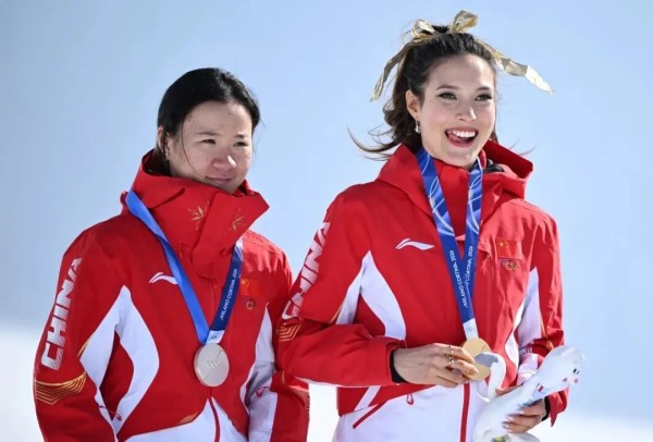 ◎李方慧、谷爱凌一同站上领奖台