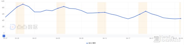 趋势分析:从时间来看,第1周日均投放400组左右,第2周至第4周的素材投放量呈明显的下滑趋势。