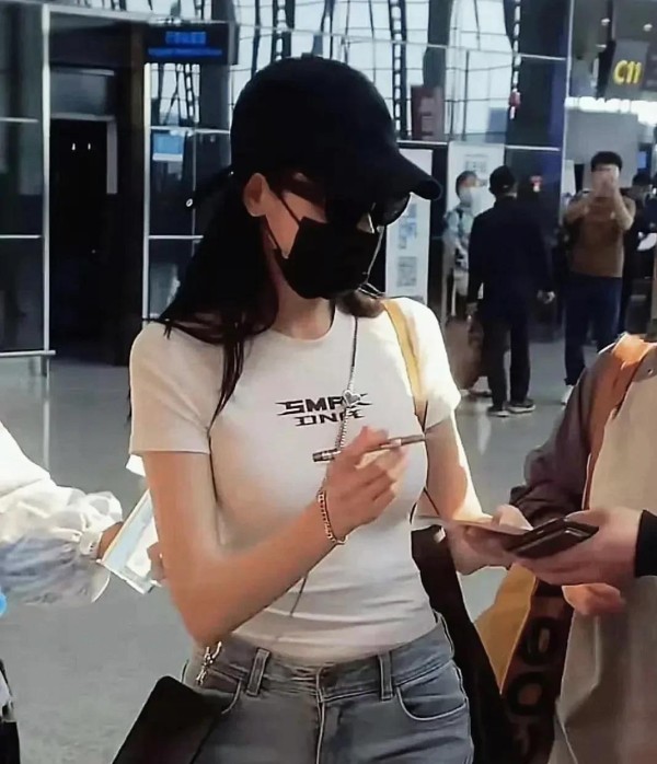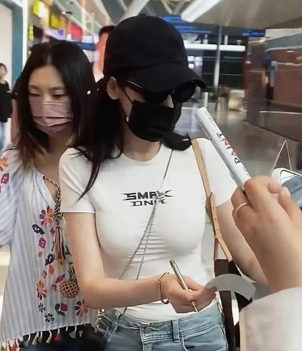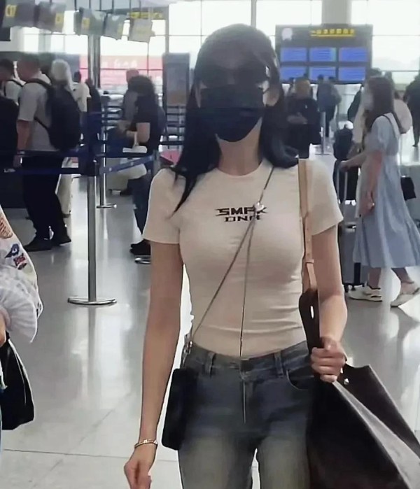 张天爱机场照曝光!牛仔裤腿细如竹竿;S型身材,引全网暴击