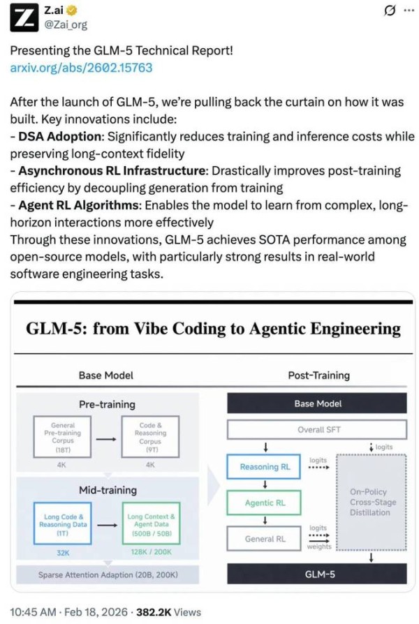 其中,凭借新一代旗舰基座大模型 GLM-5 引爆全球开发者社区的智谱,在几天前将该模型完整的技术报告放了出来。