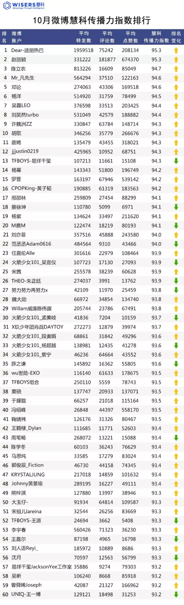 【慧科榜单】微博KOL影响力TOP榜(2018年11月第1期)【慧科榜单】微博KOL影响力TOP榜(2019年1月第1期)