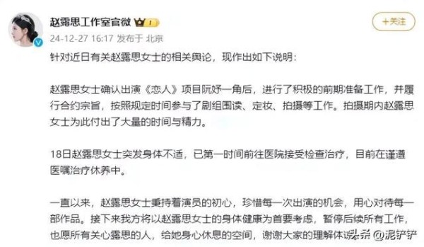 赵露思突发疾病,工作室回应引热议