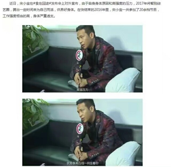 在快结束的2016年里,宋小宝一共参加了20余档节目,工作强度相当的高,身体严重透支。