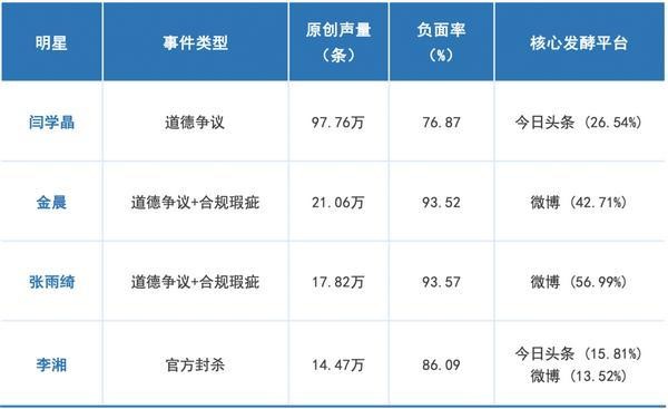核心数据总览:四明星“塌房”事件关键指标对比
