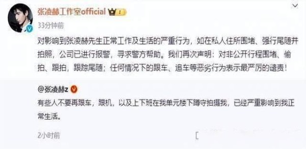 张凌赫曝光私生饭烦恼,称已影响生活,工作室报警!