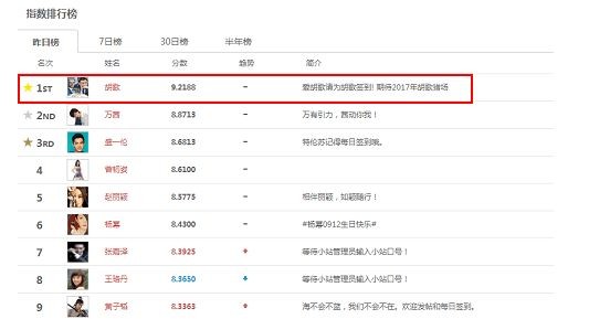 2017明星势力榜Top10: 鹿晗赵丽颖迪丽热巴获前三甲, 胡歌落榜!