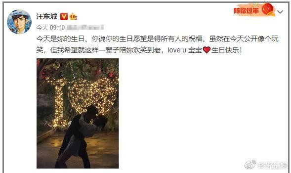虽然是愚人节,但是汪东城的官宣文案却丝毫不像是在开玩笑。他在文案中写到:“今天是你的生日,你说生日愿望是得到所有人的祝福”,汪东城还强调:“虽然今天公开像个玩笑,但我希望就这样一辈子陪你欢笑到老”。