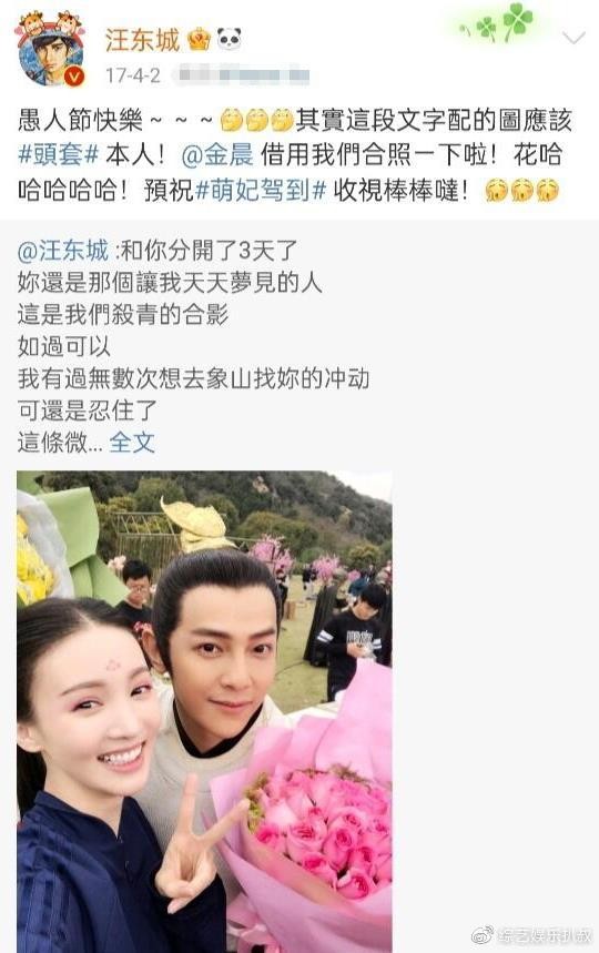 这个文案加上这张合照,怎么看怎么不像是愚人节的玩笑,毕竟一切都是那么真实,难不成汪东城这次是来真的?