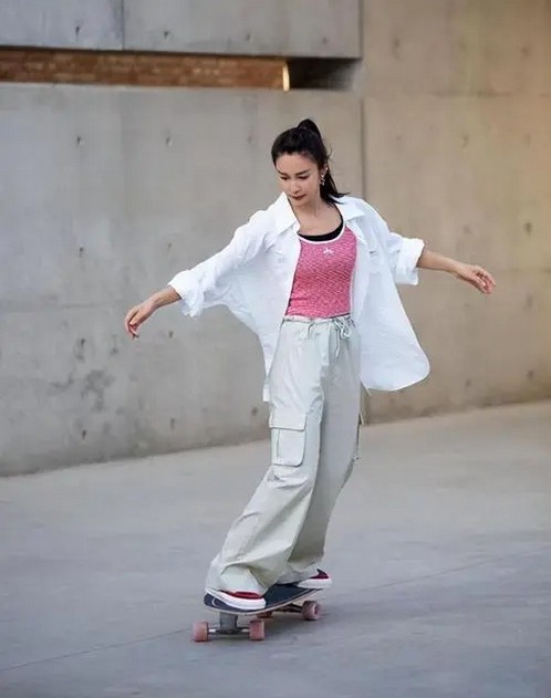 照片中,李冰冰的妹妹身穿一袭简约却不失时尚感的黑色连衣裙,搭配一双高跟鞋,整个人散发出一种不经意的高贵与冷艳。她的长发轻轻披肩,眼神中透露出一丝不羁和自信,仿佛在告诉世界,她无需依附任何人的光芒,自己就是一道璀璨的光。