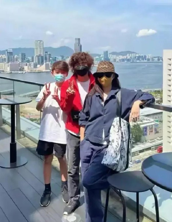 在她晒照之前,就有网友在新加坡偶遇了母子俩并晒出合影。那天她戴着帽子,黑色卫衣配裙子,瘦高的身材就算戴着口罩也难掩气质,真的很难把她和“三个孩子的妈妈”这身份联系起来,仿佛时间在她身上停了下来。
