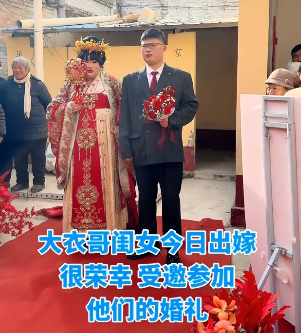 婚礼当天,天还没亮,大衣哥的家里就已经热闹了起来。周边的村民、闻讯赶来的记者、大衣哥的亲朋好友,全都涌进了他的小院,一时间小院里人声鼎沸。还有不少网友和主播,特意赶来现场,架起手机全程直播这场婚礼,镜头对准院子里的每一处布置、每一个身影,一时间,大衣哥的小院被围得水泄不通,热闹程度堪比一场小型的“发布会”。
