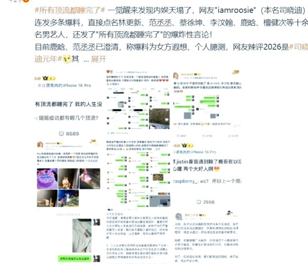 2026年第一瓜:司晓迪爆料牵扯多位顶流男星,网友震惊不已!