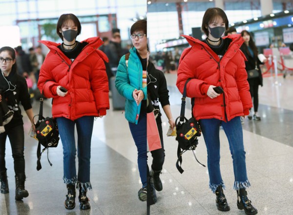 张扬活泼的红色内搭让她看起来极具少女感,而黑色的羽绒服却又让她看起来十分帅气个性。那么接下来,大家就一起与金晨学习她的穿搭方法吧。羽绒服的时尚搭配分析风格亮点:帅气个性