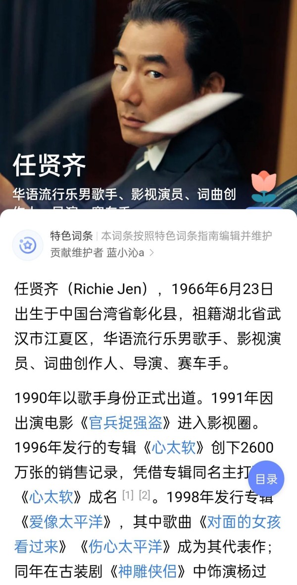 其实针对于“任贤齐是台湾的还是香港的”这个问题,我们不妨搜索一下任贤齐的相关词条:任贤齐(Richie Jen),1966年6月23日出生于中国台湾省彰化县,祖籍湖北省武汉市江夏区,华语流行乐男歌手、影视演员、词曲创作人、导演、赛车手。