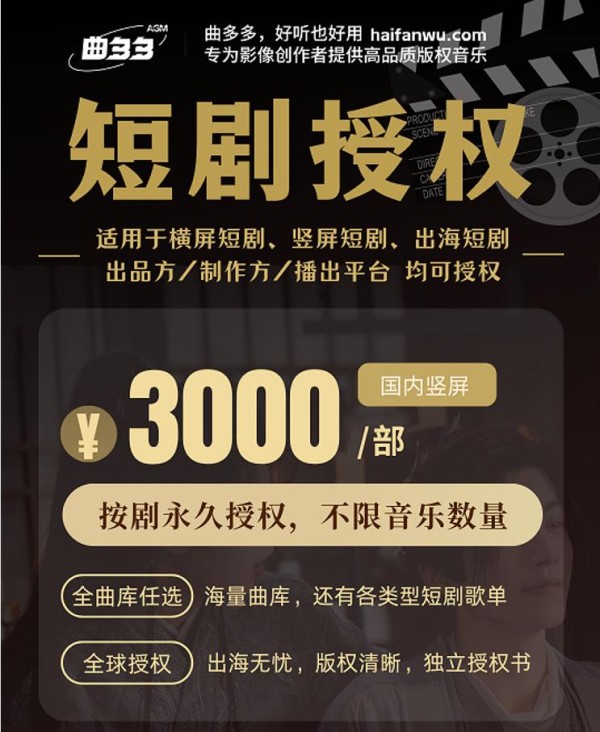 顶流歌手与短剧的这次跨界联动,就像一块巨石投入行业湖面,不仅带火了热搜,更让行业深刻反思音乐版权长期野蛮生长的现状,也倒逼行业加速向正版化、精品化转型。作为国内商用音乐头部平台,曲多多自2016年起深耕音乐版权领域至今近10年,手握超1000万+首正版曲库,还和索尼、Artlist等全球一线唱片及音乐代理机构达成深度合作,凭借扎实的版权实力赢得了众多影像创作者的信赖。也正因为常年扎根行业,曲多多清晰见证了短剧行业从“心存侥幸侵权”到“主动寻求合规”的意识转变,更明白音乐版权合规是行业高质量发展的必由之路。