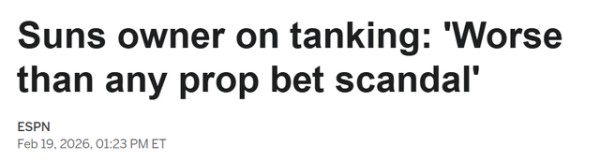“这比任何投注丑闻都恶劣得多,”伊什比亚写道。“这是战略性故意输球。对花钱来看球、为球队加油的球迷来说太糟糕了,对所有真正在为季后赛席位拼搏的球队来说也同样不公平。”