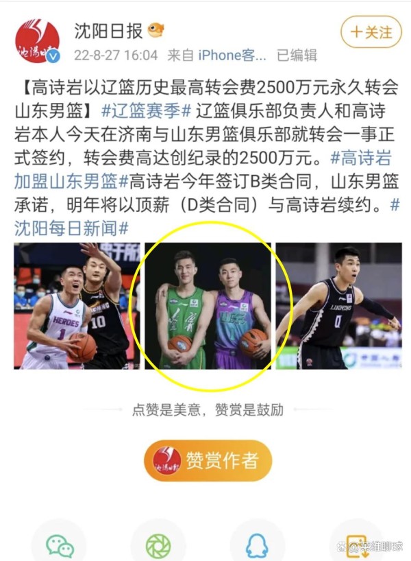 高诗岩2500万离队!辽媒却用郭艾伦合影来官宣,泄露天机证明一切