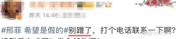 但人红是非多,最近邢菲就摊上事儿了。事情是这样的,于朦胧大家都知道吧?突然网上就传出他去世的消息,当然,后来证实是谣言。但就在消息刚传出来的时候,邢菲发了一条动态,说:“希望是假的!!一定是假的!!”