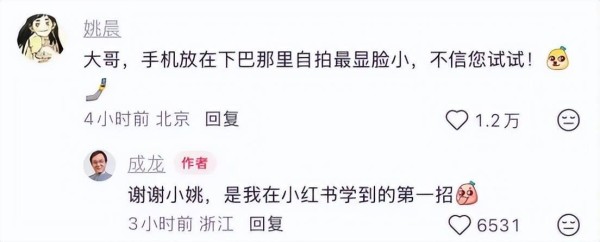 名人互动提升了账号的可见度。姚晨的评论引发了进一步讨论,用户们分享了类似的摄影技巧。成龙的回应显示出他愿意适应平台文化,这与快手直播中回复用户查询的情况相似。金喜善的参与突出了两人的跨国合作历史,他们曾在项目中合作,评论区也提及了相关回忆。