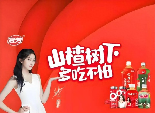 于是,冠芳也开始决定推出山楂果茶饮料。当时,周冬雨主演的电影《山楂树之恋》大火,公司提炼出了“山楂树下”的产品名称。因为山楂“化饮食,消肉积”的功效深入人心,公司又提出了“山楂树下,多吃不怕”的广告词。