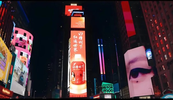 2025年1月27日,纽约时代广场巨幕被山楂树下的标志性红色占据——山楂树下似乎不甘心只做区域市场,还开始剑指国际市场。