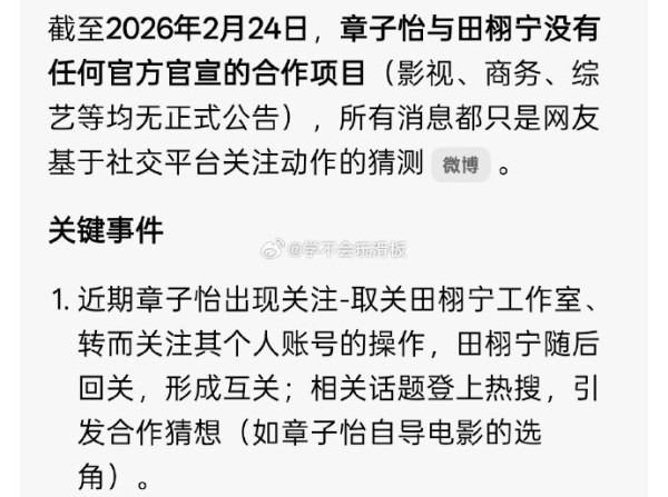 #章子怡粉丝不满章子怡关注田栩宁# 章子怡取关工作室换成田栩宁今日,章子怡关注田栩宁后,引发不少讨论,不少网友猜测田栩宁要和章子怡有合作了。而章子怡粉丝好像挺不满意的,认为章子怡只是手滑,而且并不觉得他两会有合作如果是真的,你期待吗?#章子怡田栩宁 合作#