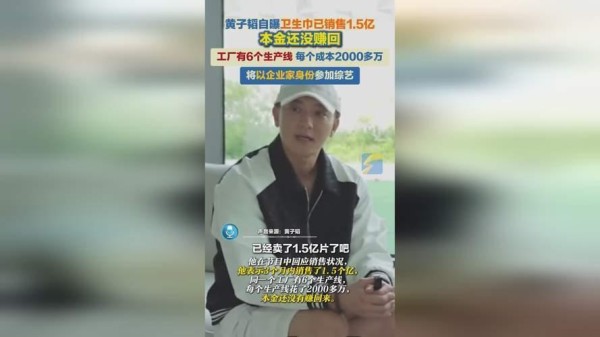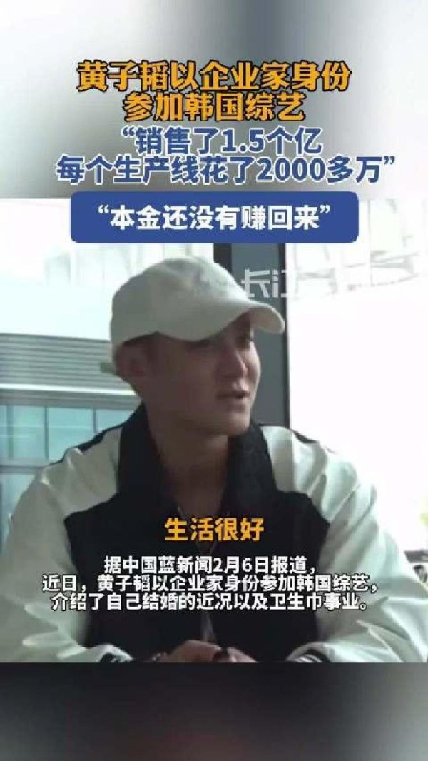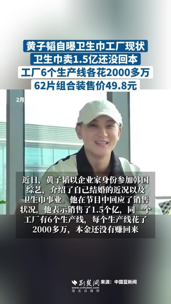 黄子韬韩综自曝:卫生巾卖1.5亿未回本,6条生产线砸上亿