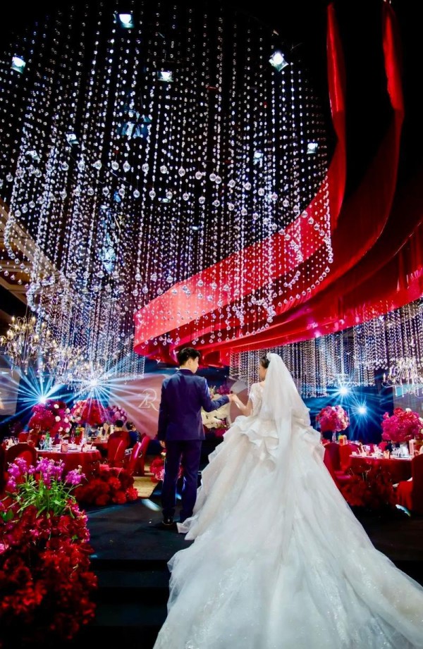 汪小菲婚礼细节流出,马筱梅婚纱镶999颗钻石
