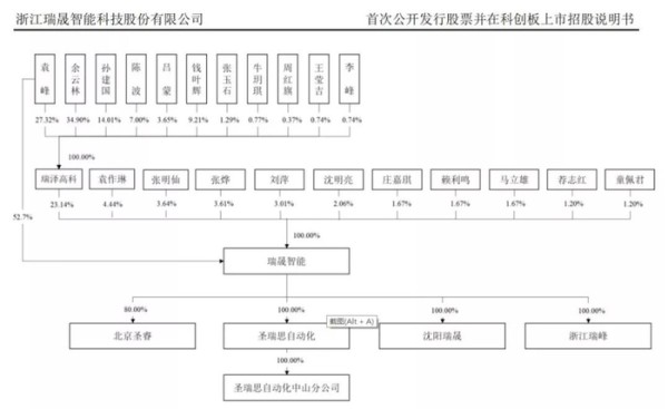 瑞晟智能控股股东及实际控制人是袁峰,直接持有以及通过瑞泽高科控制了瑞晟智能75.84%的股份。