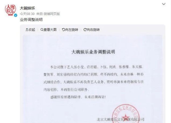 贾玲与大碗娱乐的道别:张小斐等艺人将何去何从?贾玲,辞任!张小斐等多名艺人不再续约