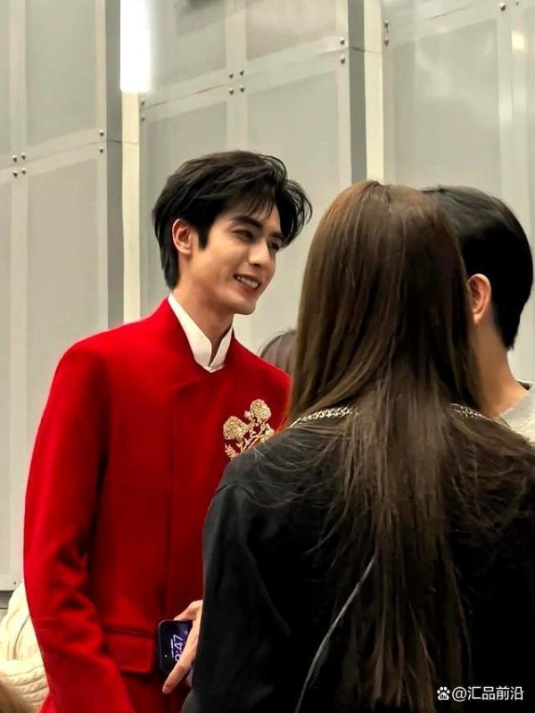 后台有人拍了宋威龙,他穿了件红衣服。